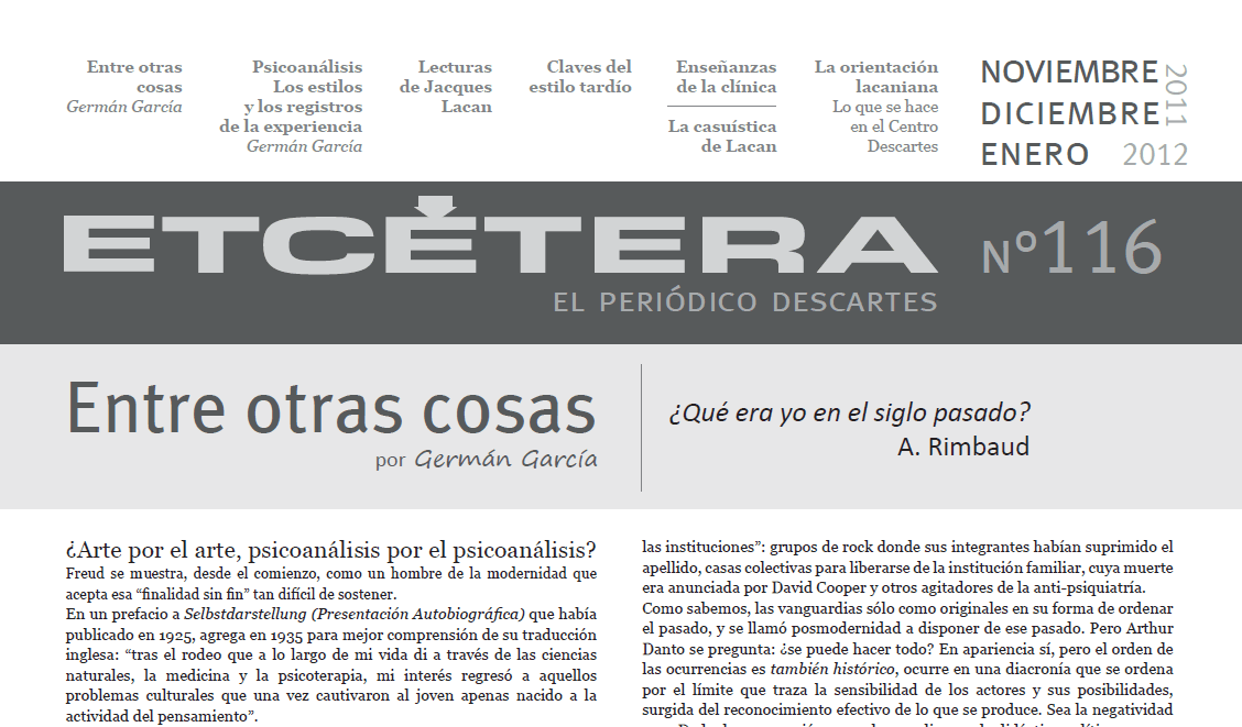 # (noviembre 2011). Entre otras cosas. En Etcétera N° 116, Buenos Aires.