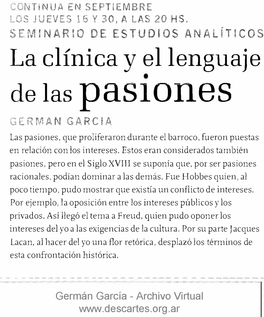 # (septiembre 1994). La clínica y el lenguaje de las pasiones. Seminario de Estudios Analíticos. En