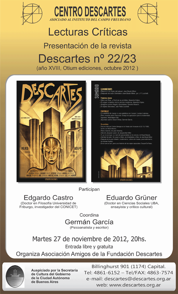 Es una actividad mensual iniciada en mayo de 1992 en la que se realizan comentarios críticos a propósito de la aparición de libros de interés para el psicoanálisis - escritos en lengua castellana o traducidos - La reunión de autores, comentadores, conocedores del tema, es decir lectores, tiene el objeto de propiciar un ejercicio dialéctico útil a nuestra perspectiva. Además promovemos la lectura de autores no consagrados por la crítica ni el mercado de “suplementos” culturales.