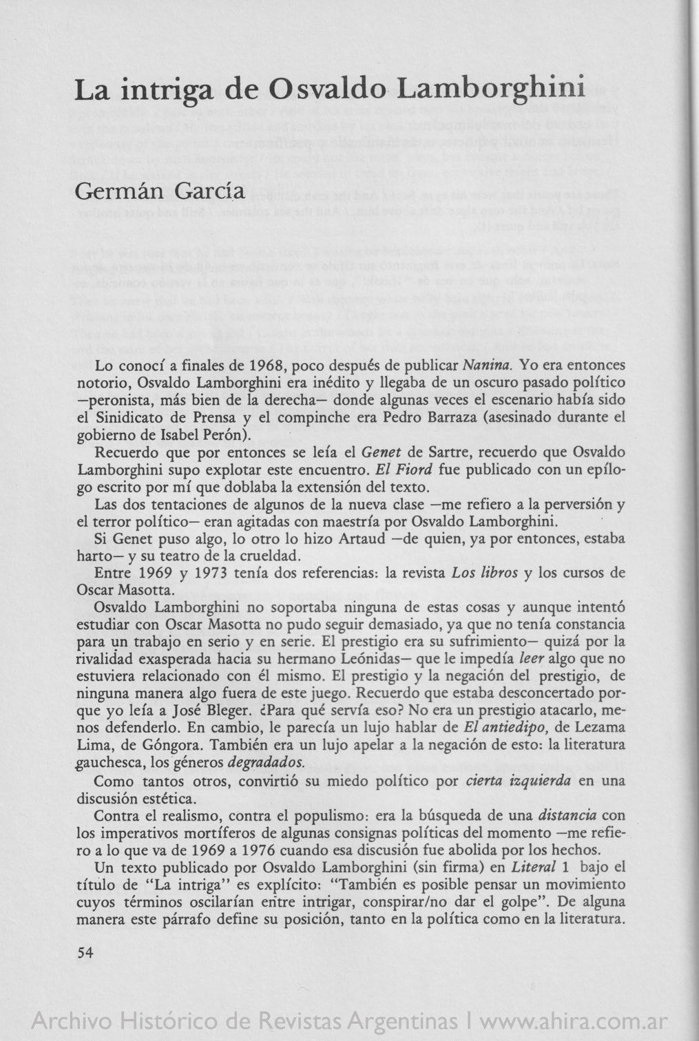 # (octubre 1986). La intriga de Osvaldo Lamborghini. En