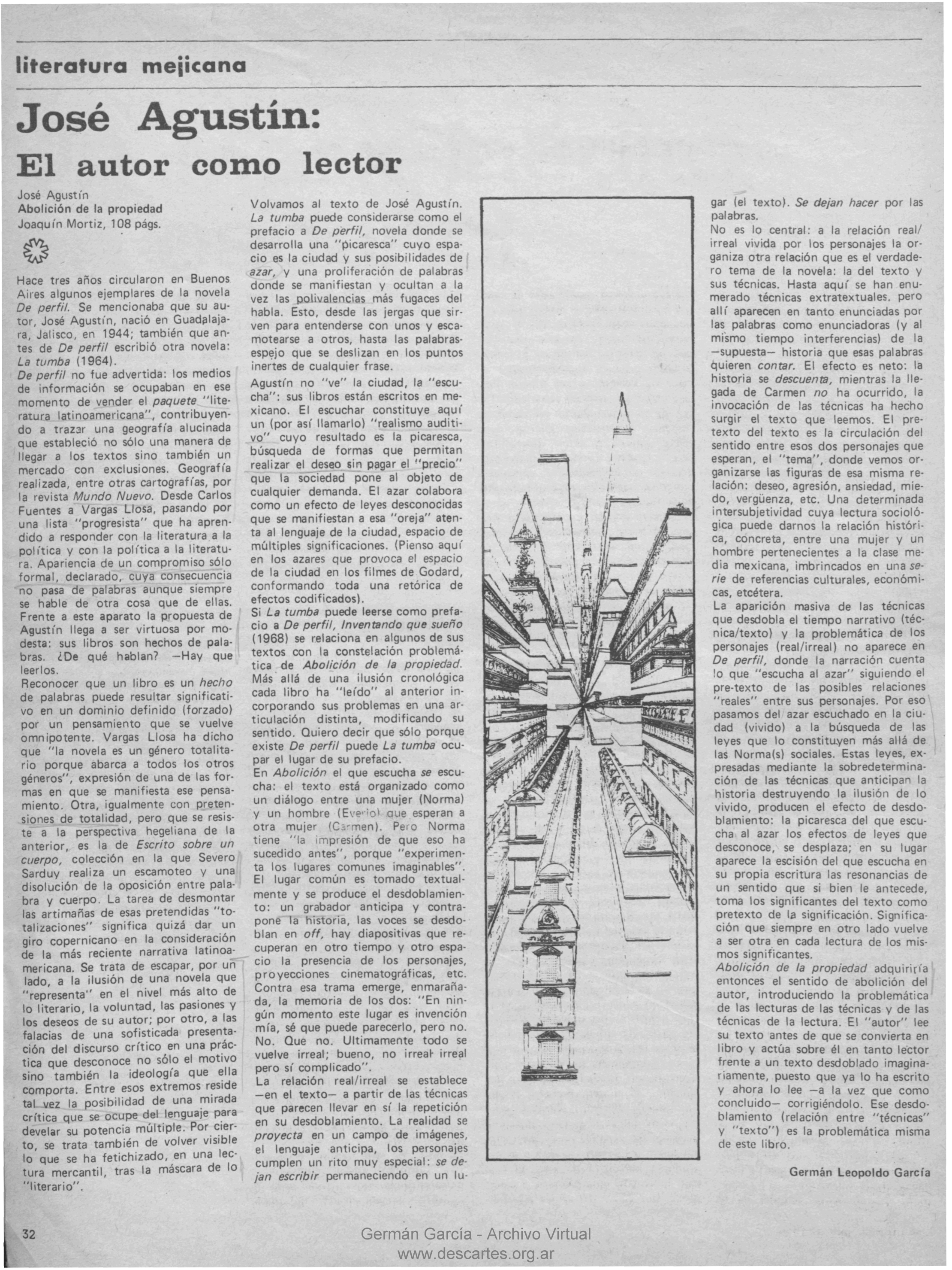 # (julio 1970). José Agustín: El autor como lector (sobre