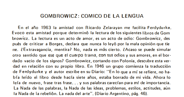 # (agosto 1980). Gombrowicz: cómico de la lengua. En Escrita N°1 (pp.33-39), Córdoba; en (abril 2019) . En Freudiana N° 85. Revista de psicoanálisis de la ELP-Catalunya. Recuperado de IG @germanleopoldogarcia.